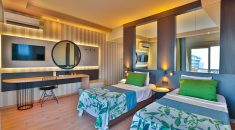 Lokacija: Udaljen je 98 km od Antalijskog aerodroma i 22 km od centra Alanje odnosno 3 km od predgrađa Turkler. Počeo je sa radom 1990. a poslednji put je renoviran 2019. godine. Prostire se na površini od 9.000 m2. Plaža: Hotelska plaža je peščana. Ležaljke, suncobrani i dušeci za plažu su besplatni za goste hotela, peškiri za plažu (depozit). Sobe: Hotelsku celinu čine šestospratna glavna zgrada i depadansi sa četiri i pet spratova. Raspolaže sa ukupno 203 sobe, od čega su 156 standardne sobe (max 2+2 osobe, 28 m2) i 47 jednosobnih porodičnih soba (max 4 osobe, 36 m2). Sve sobe sadrže: individualni klima uređaj, sef (plaća se), TV, mini bar (voda po dolasku), WiFi (plaća se), telefon, fen za sušenje kose, balkon. Hotelski sadržaj: Glavni i a’la carte restoran (riblji - jednom tokom boravka besplatno korišćenje), 3 bara, 2 otvorena bazena, zatvoreni bazen, 2 vodena tobogana, 2 sale za konferencije, tursko kupatilo, sauna, pikado, stoni tenis, aerobik, odbojka na pesku, animacija, dečiji bazen (zatvoreni i otvoreni), mini klub (4-12 godina). Plaća se: spa centar, masaže, motorni sportovi na vodi, usluge lekara, frizera, pranja, peglanja i hemijskog čišćenja veša. Način služenja obroka: Švedski sto.