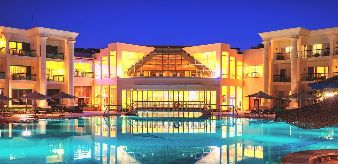 Lokacija: Nalazi se na kraju šetališta Memše, na 7 km od aerodroma. Renoviran 2008. godine. Sastoji se od glavne zgrade u kojoj se nalazi recepcija, šest trospratnih zgrada i kompleksom dvospratnih vila koje se nalaze u drugom redu od mora preko puta šetališta Memša. Plaža: Sopstvena, peščana. Korišćenje ležaljki i suncobrana je besplatno za goste hotela. Hotelski sadržaj: Recepcija, lift, lobi, menjačnica, glavni restoran “Pebbles”, 3 bazena (1 dečiji), 3 a la carte restorana, bar na bazenu, lobi bar, besplatan wi-fi (lobby hotela), mini klub za decu, mini disko za decu, igralište za decu, unutrašnji bazen, teretana, aqua park, dnevne i večernje animacije, ping pong, teren za fudbal, teren za odbojku na plaži, Uz doplatu: a la carte restoran “La Casa”, bankomat, prodavnice, usluge pranja i peglanja veša, šiša, Spa tretmani, room service, sportovi na vodi, salon lepote, usluge čuvanja dece, usluge masaže, doktor i apoteka. Tokom zimskog perioda jedan spoljašnji bazen se greje. Sobe: Hotel raspolaže sa ukupno 401 smeštajnom jedinicom. Sve sobe sadrže: kupatilo sa kadom ili tuš kabinom, SAT/TV, sef, telefon, mini bar, ketler za kafu i čaj, terasu ili balkon. Standardne sobe i premium garden view sobe se nalaze u vila delu u drugom redu od mora koje je samo šetalištem odvojeno od glavne zgrade hotela, dok se premium sobe nalaze u prvom redu do plaže.Sve sobe imaju francuski ili dva odvojena standardna lezaja, treci krevet je pomoćni lezaj, maksimalan broj kreveta u sobi je 3. Standardne sobe više odgovaraju kategorizaciji 4*. Usluga: All Inclusive, obroci se služe po principu švedskog stola (samoposluživanje). NOVO: Usluga all inclusive je 24h dostupna gostima hotela. Napomena: Lep kompleks sa zelenilom na kraju Memše preporuka je kako za porodice sa decom tako i za parove.Sve premium sobe su kompletno renovirane 2019 godine, dok su premium garden view sobe renovirane 2021 godine. Od 01.01.2021. hotel posluje u sklopu internacionalnog lanca Swiss INN.