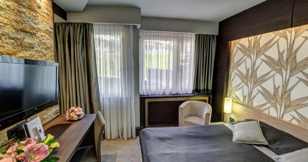 Grand Hotel & Spa se nalazi na ekskluzivnoj lokaciji, nadomak ski staza i ski liftova, u prelepom okruženju Nacionalnog parka Kopaonik. Vrhunski komfor i udobnost upotpunjen je brojnim sadržajima za odmor i uživanje tokom cele godine. Sadržaj Grand Hotela čine: Spa & Wellness, Kongresni centar, A la carte restoran Garden, Fitness centar, Sportska sala, klub za decu i kuglana. Hotel nudi smeštaj u 221 soba i apartamana. Standard soba sadrži: francuski ležaj ili dva odvojena ležaja sa kupatilom, Bade mantil, Fen za kosu, LCD TV, DVD Plejer, Mini bar, Telefon, Wi-Fi. Family soba sadrži: spavaću sobu sa francuskim ležajem, manju spavaću sobu sa ležajem za jednu osobu, kupatilo, Bade mantil, Fen za kosu, LCD TV, DVD Plejer, Mini bar, Wi-Fi. Superior soba sadrži: Francuski ležaj, sofu na razvlačenje, Bade mantil, Fen za kosu, LCD TV, Mini bar, Telefon, Wi-Fi, Sef. Premium apartman sadrži: kupatilo, dnevnu sobu sa ugaonom garniturom na razvlačenje, u jednom apartmanu i mini-kuhinju, pultbar i dve visoke stolice, dve spavaće sobe – francuski ležaj u jednoj u drugoj francuski ležaj ili ugaona spavaća soba sa dva odvojena ležaja i kupatilo, Bade mantil, Fen za kosu, LCD TV, DVD Plejer, Mini bar, Wi-Fi. Executive apartman sadrži: kupatilo, dnevnu sobu sa trosedom koji se razvlači i mini-kuhinjom, pultbarom i dve visoke stolice, dve spavaće sobe sa francuskim ležajem, bade mantil, 2 LCD TV-a, telefon, DVD player, mini-bar, sef, Wi-Fi.