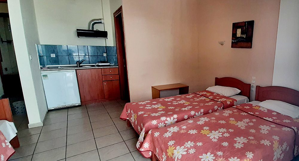 Vila Sula se nalazi na samoj plaži u novom delu Nei Porija. Raspolaže lepo uređenim i održavanim dvokrevetnim studijima i petokrevetnim apartmanima koji se nalaze na drugom spratu vile i imaju bočni pogled na more. Sve smeštajne jedinice poseduju osnovno opremljenu kuhinju, kupatilo sa kadom, prostranu terasu, LCD TV i klima uređaj čije se korišćenje dodatno naplaćuje po danu, a u objektu postoji i mogućnost korišćenja WiFi interneta. Tokom boravka gosti sami vode računa o higijeni apartmana, dok je promena posteljine na polovini boravka.
