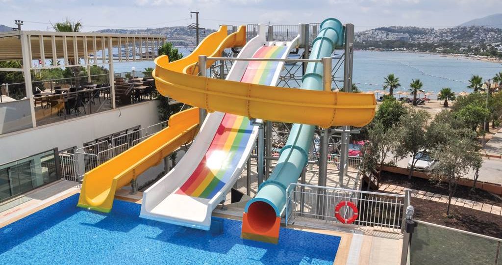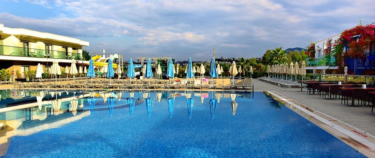 Lokacija Sjajna pozicija u zalivu Gumbet. Udaljen je samo 3 km od centra Bodruma do kojeg se brzo stiže lokalnim dolmušima. Počeo je sa radom 1995. godine, ali je potpuno renoviran 2014. godine. Hotelski kompleks zauzima površinu od 13.200 m2. Neobično raznovrstan sadržaj za hotel te kategorizacije apsolutno ga izdvaja iz ponude i svaki odmor čini kvalitetnijim. Plaža Hotel ima svoj deo na gradskoj peščano-šljunkovitoj plaži u Gumbetu. Ležaljke, suncobrani i peškiri su besplatni za goste hotela. Sobe Hotelski kompleks se sastoji od jedne 3-ospratne zgrade i 20 dvospratnih i trospratnih blokova. Raspolaže sa 83 Hotel sobe (30 m2, za maksimalno 3 osobe), 138 Klub soba (27 m2, za maksimalno 3 osobe) i 60 dvosobnih klub porodičnih soba (38 m2, za maksimalno 4 osobe). Sve sobe imaju balkon ili terasu, klima uređaj (klub sobe - individualni, hotelske sobe - centralni), telefon, TV, sef, mini-bar (prazan), fen za sušenje kose. Hotel sobe su sve renovirane i moderno opremljene. Hotelski sadržaj Osnovni restoran, a la carte restoran (internacionalni - besplatno jednom u toku boravka, uz rezervaciju), 5 barova, 4 spoljašnja bazena, 3 bazena za decu, 3 tobogana, jedan unutrašnji bazen, WiFi u lobiju hotela (besplatno), sauna, parno kupatilo, hamam, stoni tenis, pikado, teretana, animacije. Plaćaju se: masaže i tretmani u spa centru, doktor, sportovi na vodi, uvozna alkoholna pića, ceđeni sokovi, turska kafa. Način služenja obroka Švedski sto.